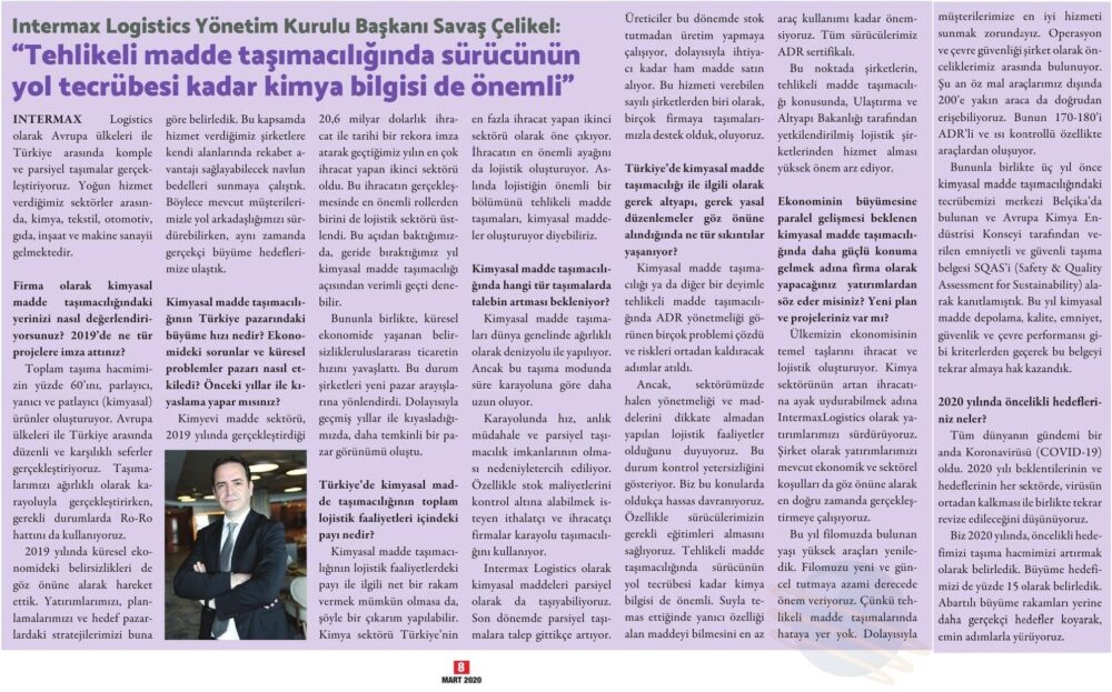 Intermax Logistics olarak Avrupa ülkeleri ile Türkiye arasında komple ve parsiyel taşımalar gerçekleştiriyoruz. Yoğun hizmet verdiğimiz sektörler arasında, kimya, tekstil, otomotiv, gıda, inşaat ve makine sanayi gelmektedir.